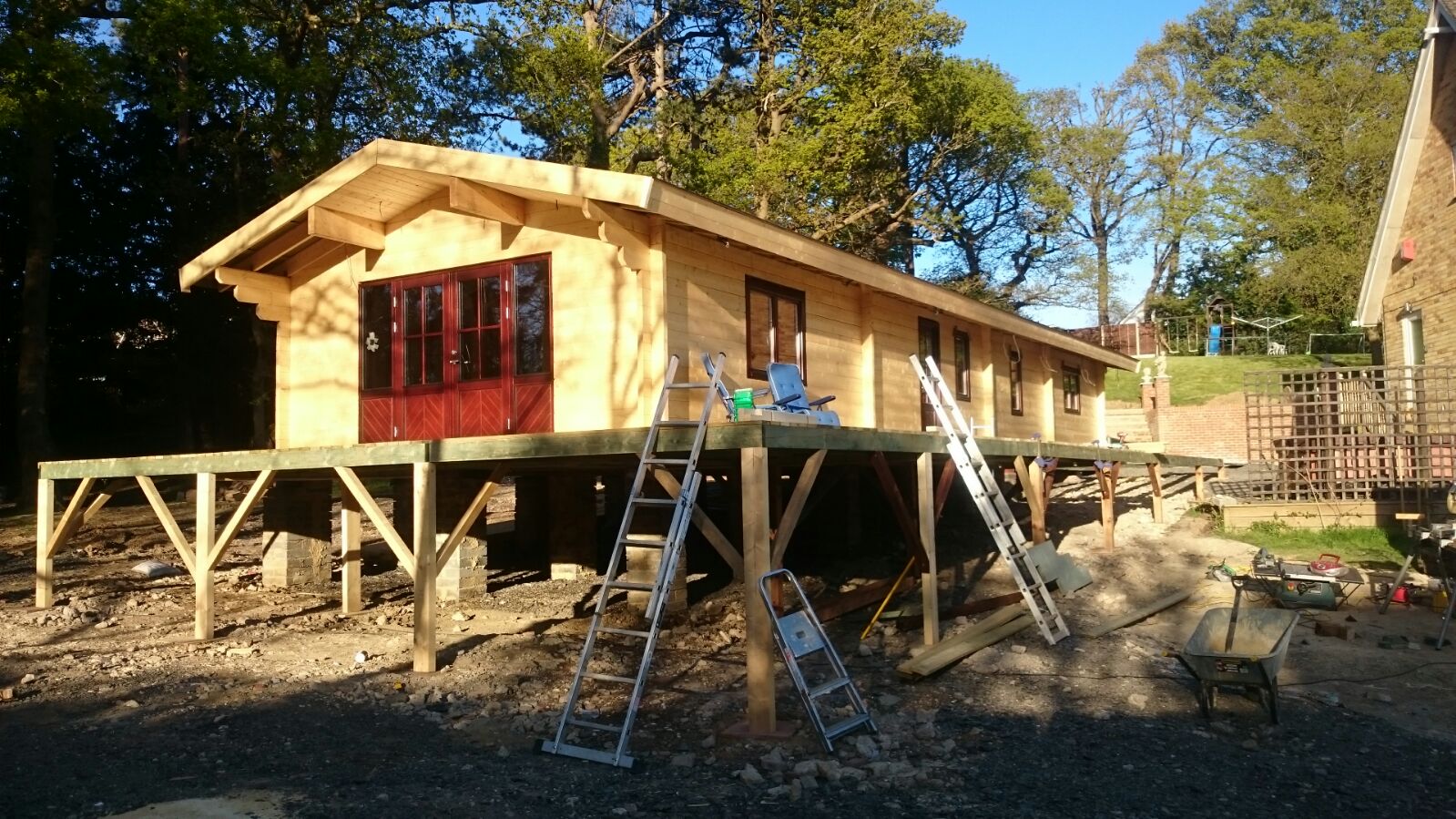 Das Dach ist für Schindeln, Ziegel oder Blech vorbereitet