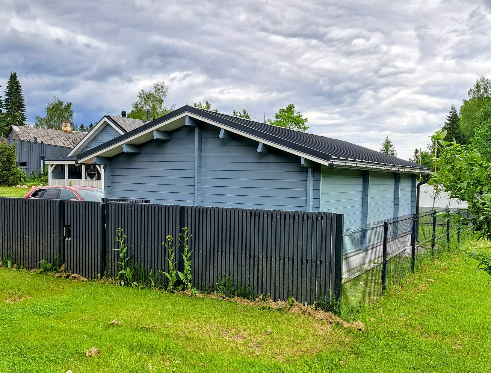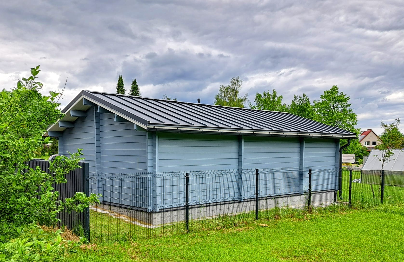 70 mm triple t&g logs kiln dryed nordic spruce double glazed windows wooden gates or rc gates tbd roof cover tbd