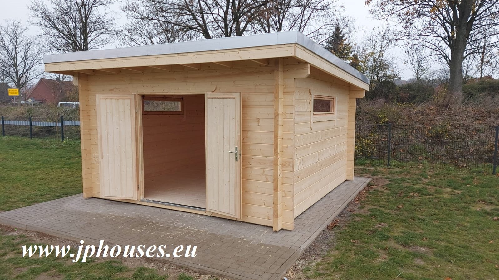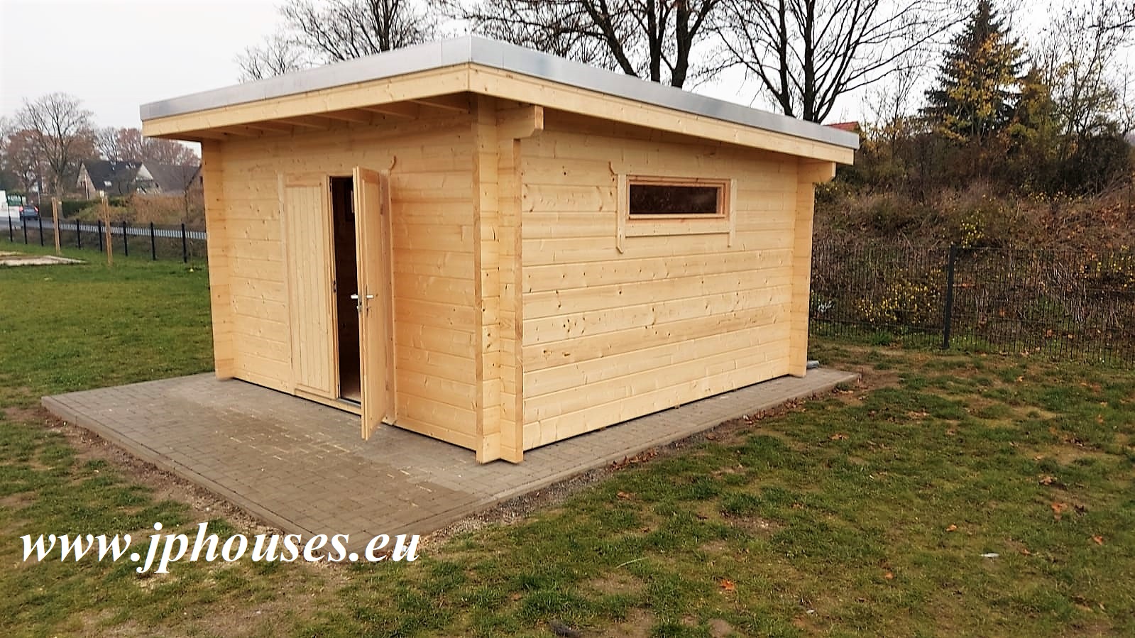 Massive roof construction will allow also for eco roofs like Sedum roofs. The door makes easy access to the building.