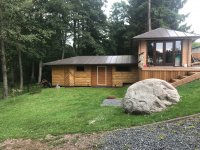 -70mm logs -traditional roof double glazed quality windows and doors -28mm flooring