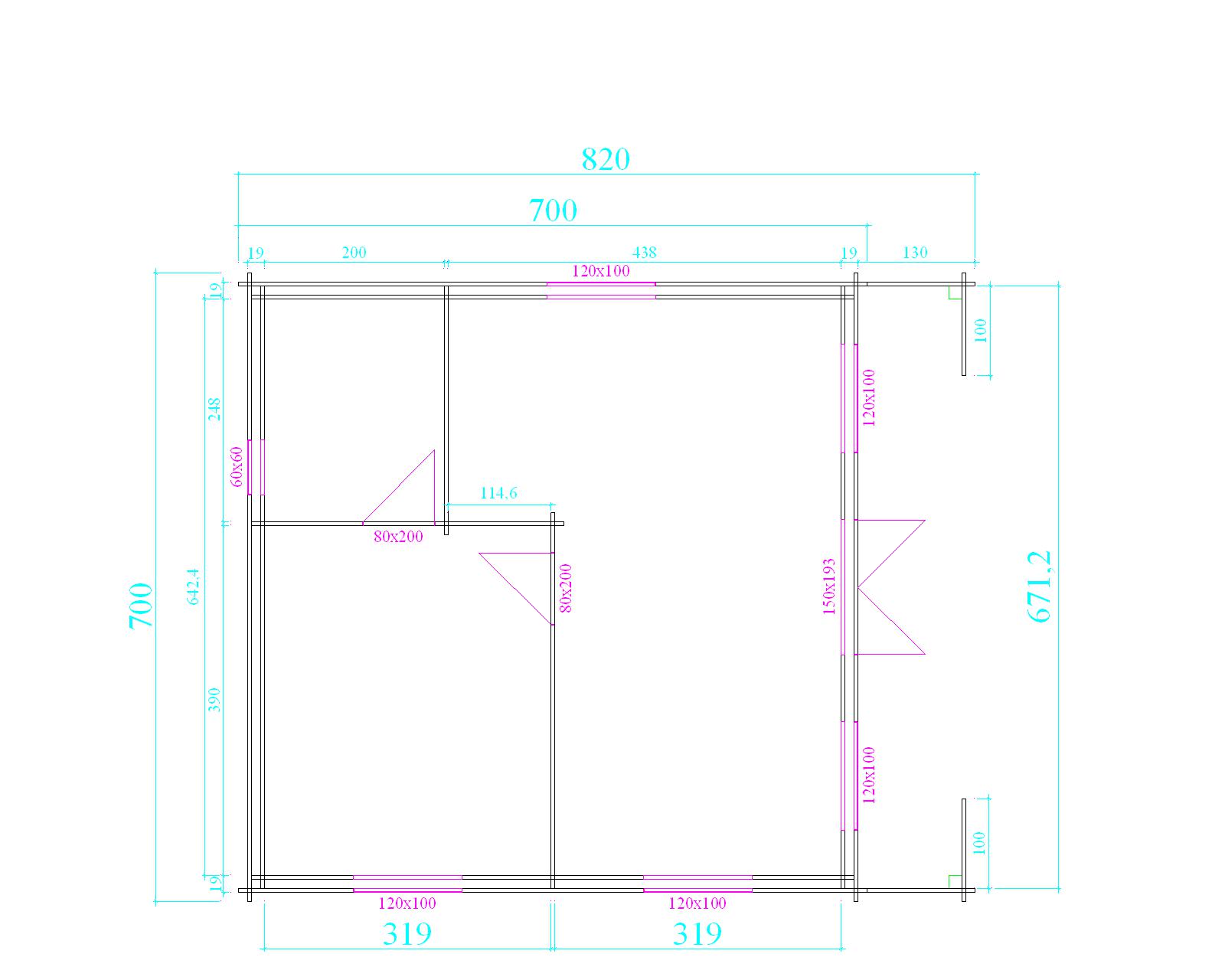 duplex 44mm outside wall with double crosses