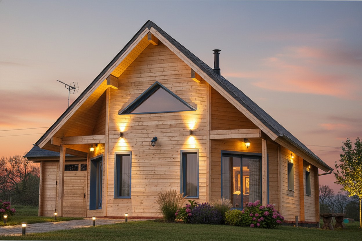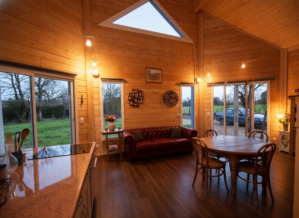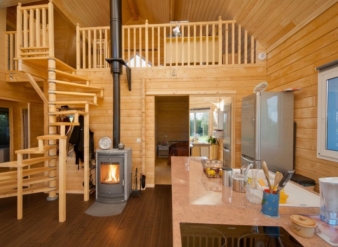 Double 70mm skin and space for 200mm insulation making this house energy efficient. 2 bedrooms and an attached workshop.