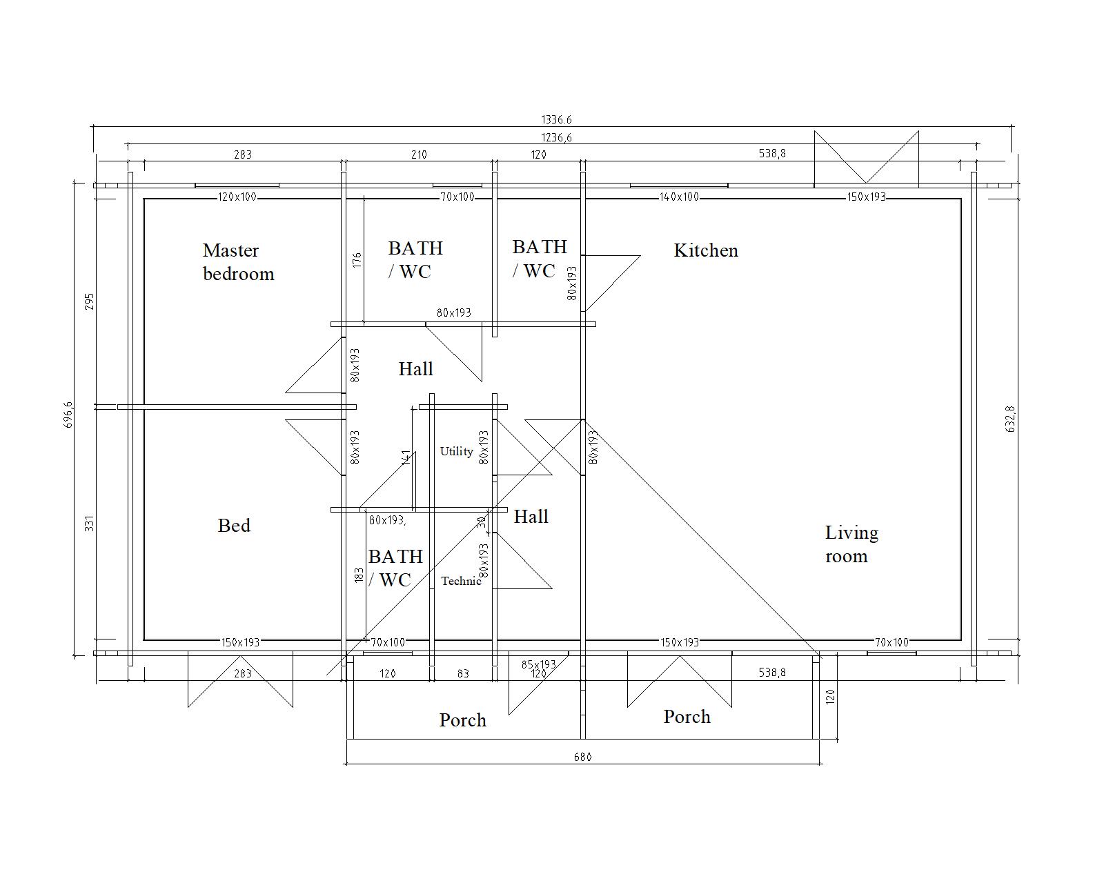 Granny annex MHB 2 bed tiny home with a low carbon foot print. -70 mm logs -insulated outside walls either inside or outside insulation package -strong roof rafter purlin roof -extra big roof overhangs to protect the house from weather and sun -double or triple glazed windows and doors lasur finished or optional wood aluminium windows and doors -also ready to match the caravan act UK -hybrid log home construction