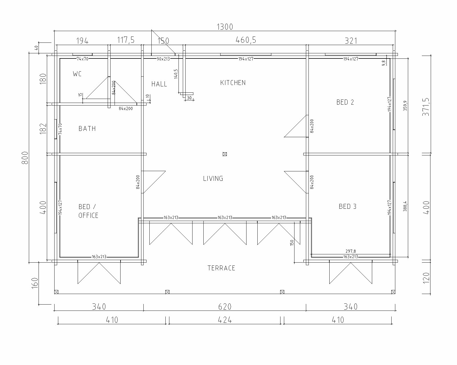 Marylin 95 - 2 bed flat packed prefabricated wooden house This house comes as 2 or 3 bedroom house. It has a combined kitchen and living space and has with up to 3 bedrooms even space for a small family.