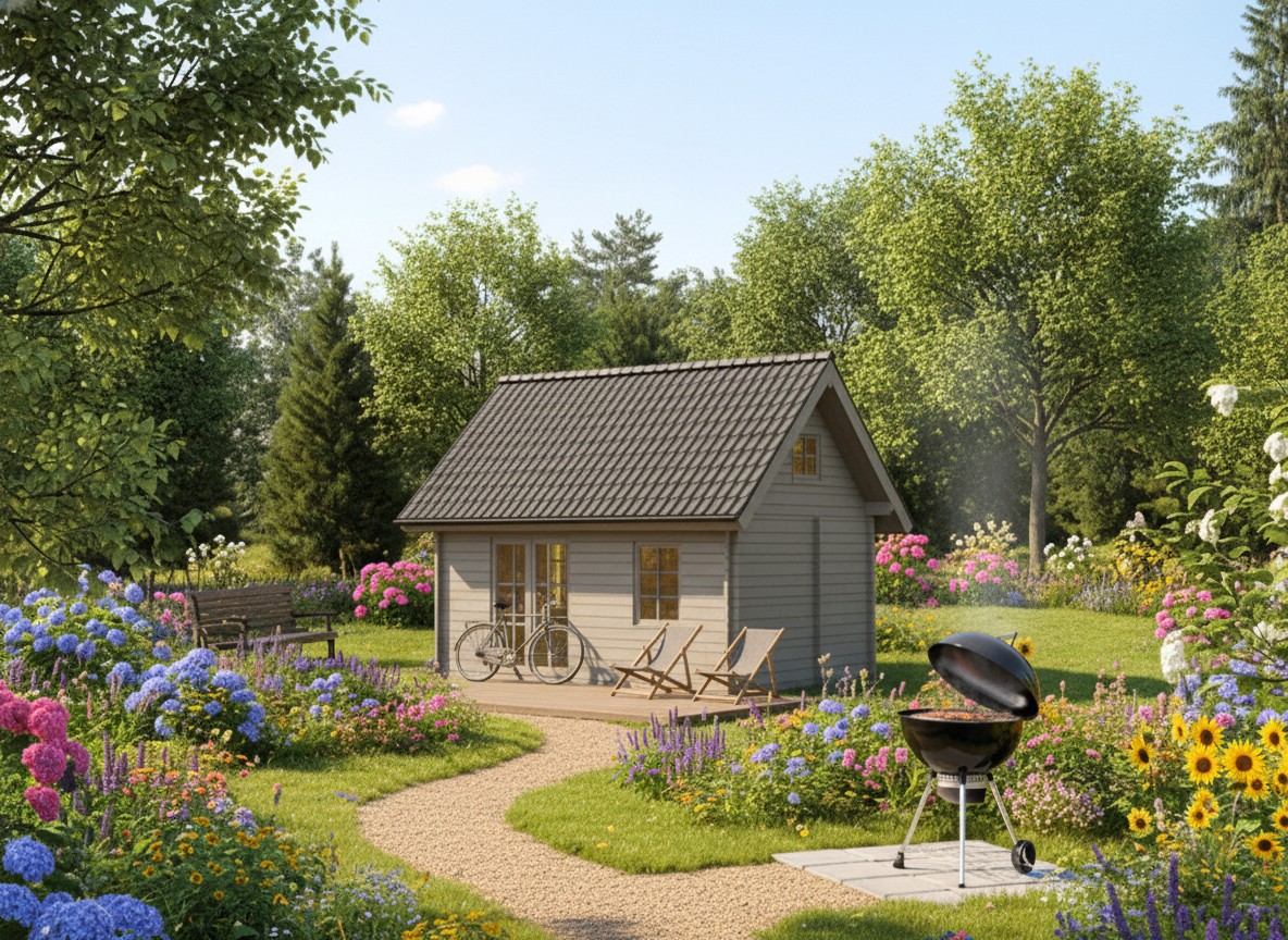Nägus aiamaja 16 m2, millel on ees 8 m2 piirdega terrass. Siin on tore nautida oma aeda ja meeldivat seltskonda. Kesk-Eurooplasest aiaomaniku unistus.