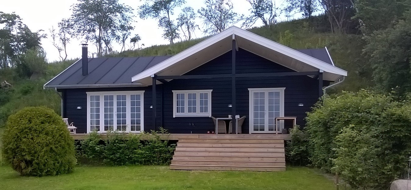 Kauni Arresø järve kaldal on elegantne maja. 95m2 elamu valmis koostöös meie Taani partneriga. Välissein on tehtud kahekordsest 70mm freesprussist, mille vahel on 250mm soojustust, see tagab hea soojapidavuse ja meeldiva puitmaja sisekliima. Aknad on taani tüüpi kolmekordse klaaspaketiga. Musta ja valge värvi tugevad kontrastid teevad maja pilkupüüdvaks ja toovad hästi esile.